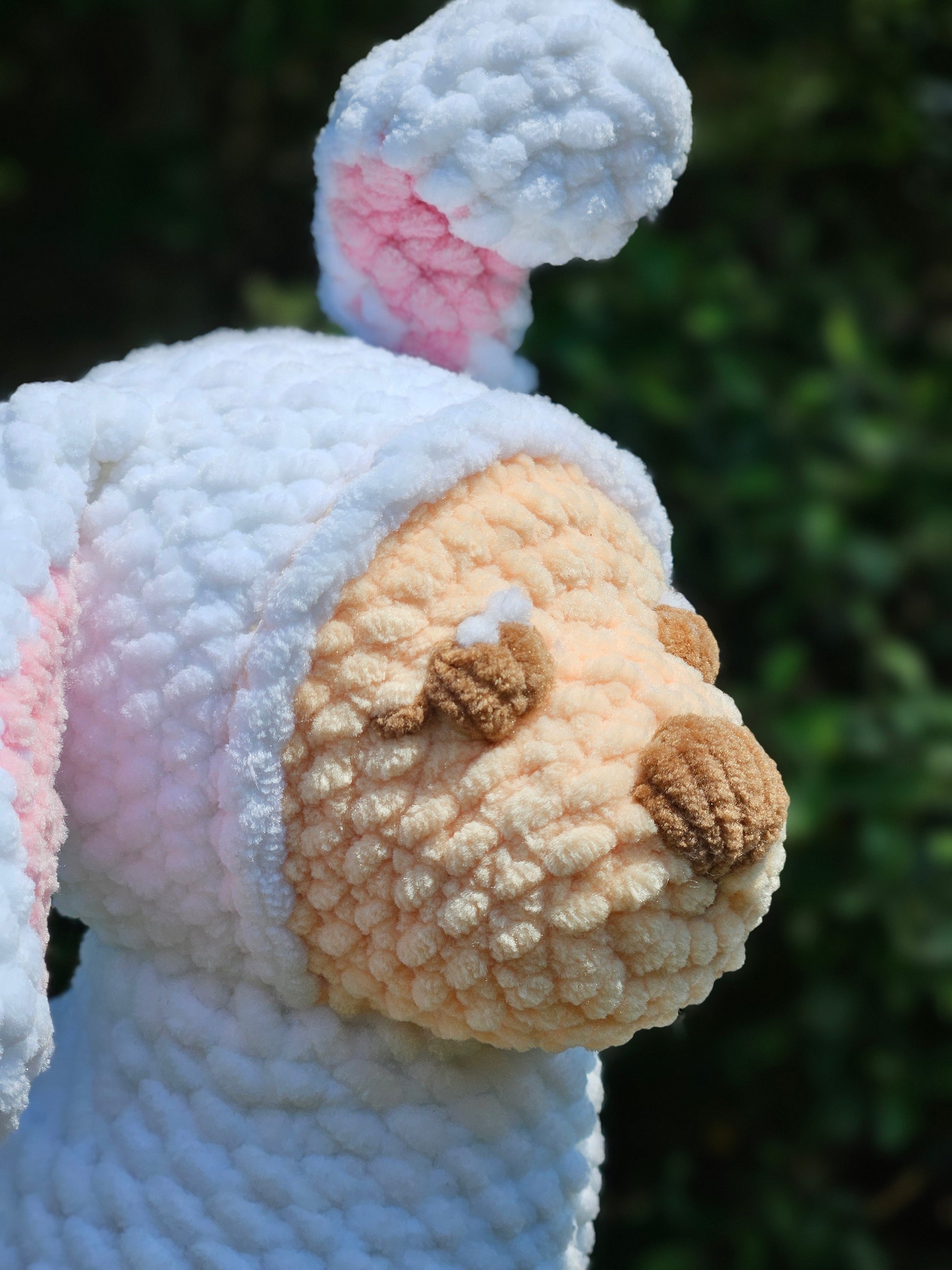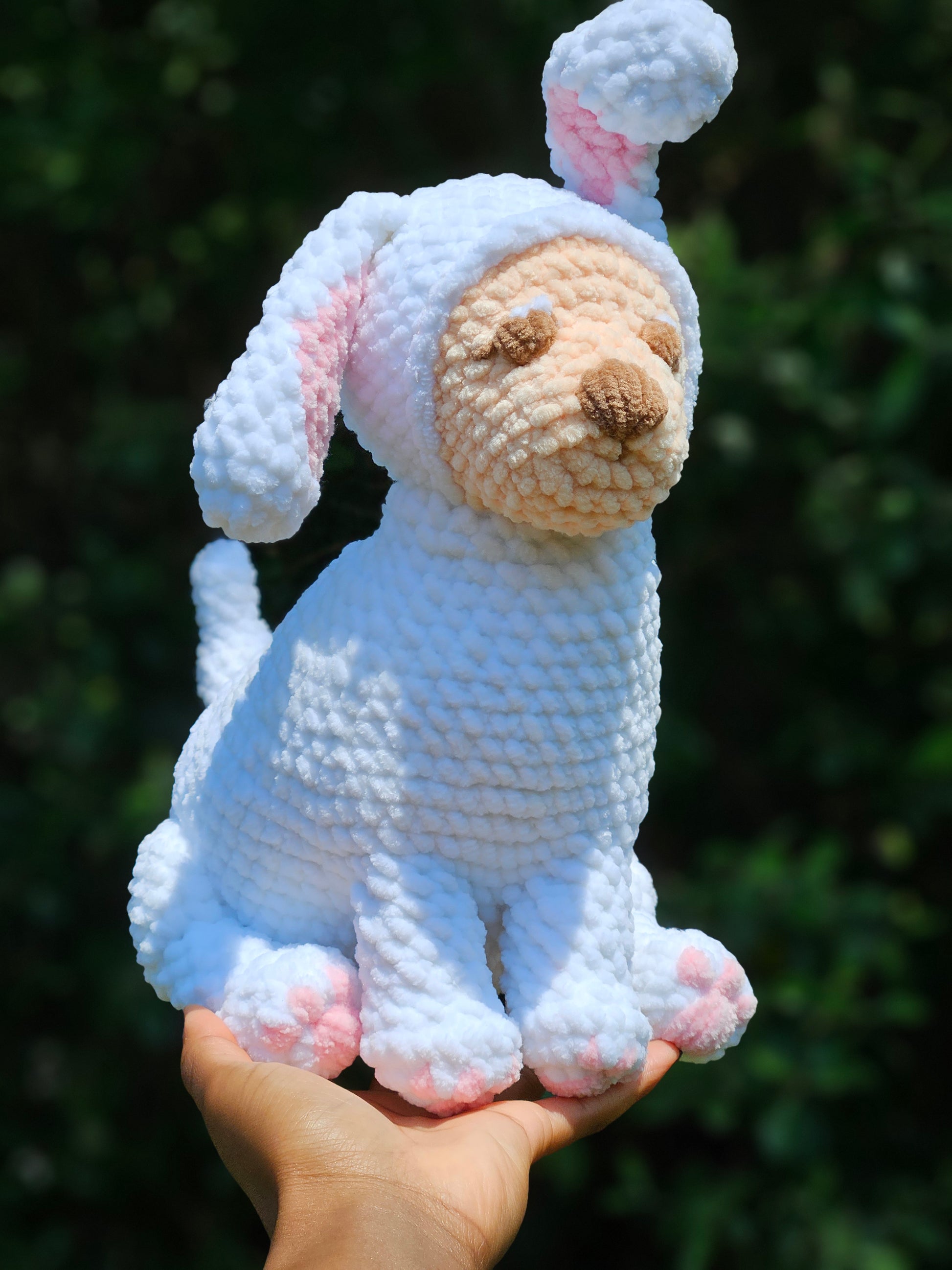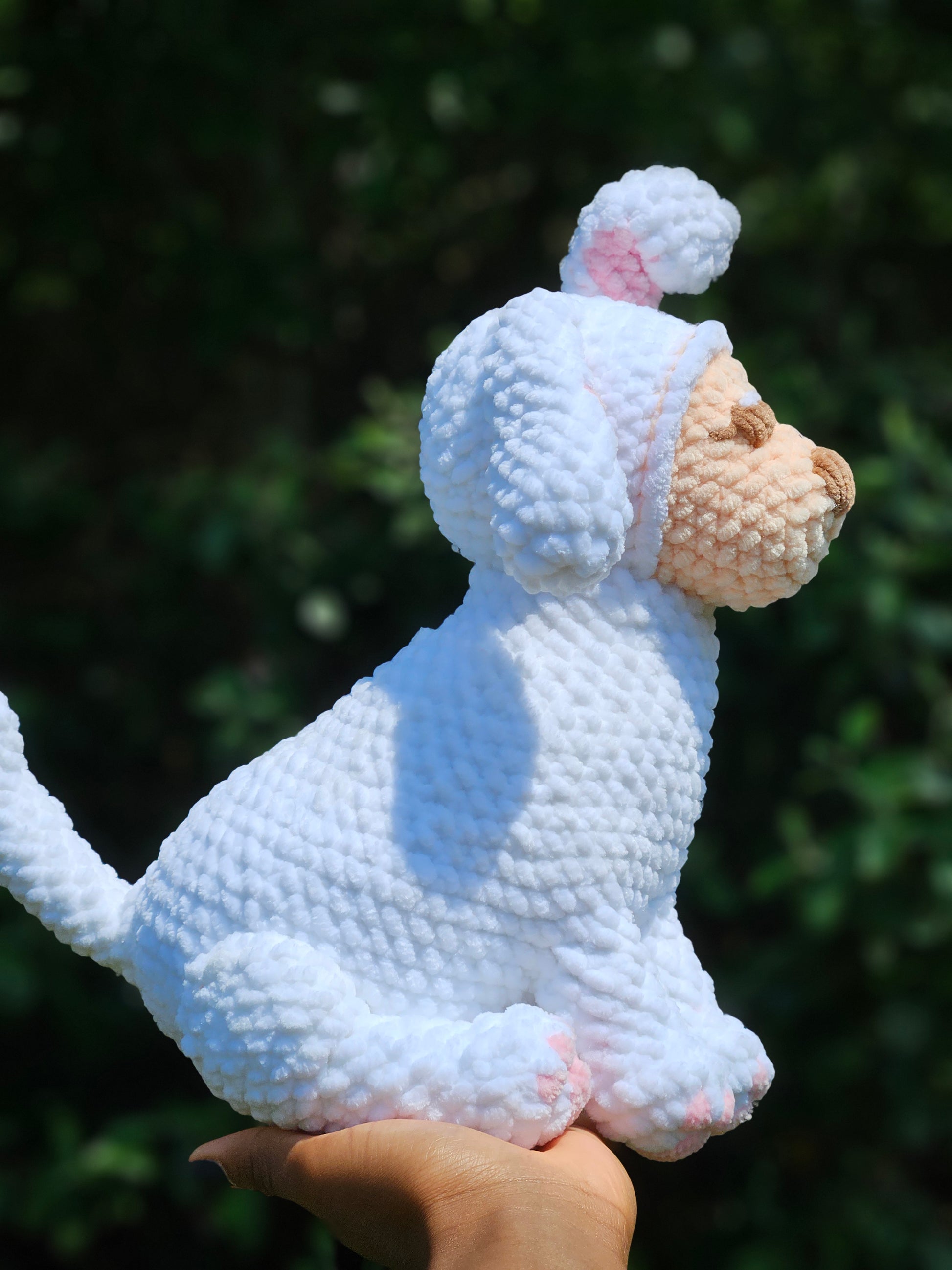 Each dog plushie is handmade using OTEX- certified polyester yarn. Slight differences in color and size may occur for this reason.